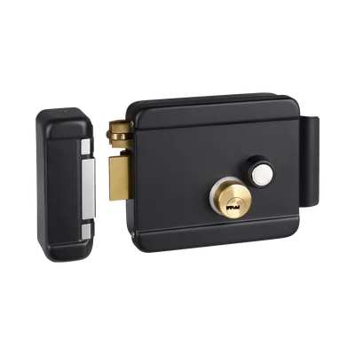 Cerradura Eléctrica con Botón de Salida / Incluye Llave / Exterior / Izquierda / Color Negro