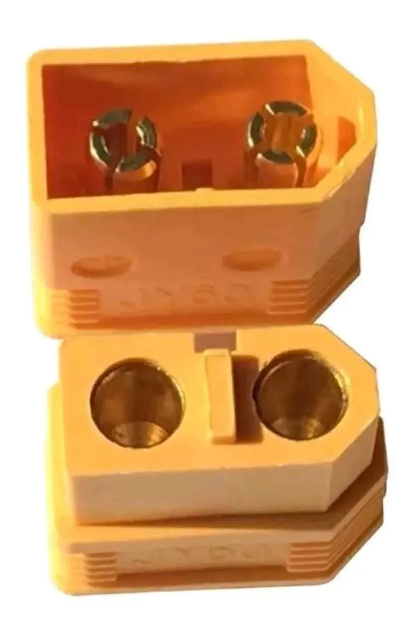 CONECTOR XT60 HEMBRA Y MACHO PARA BATERIAS LIPO CON TERMINALES SOLDABLES.