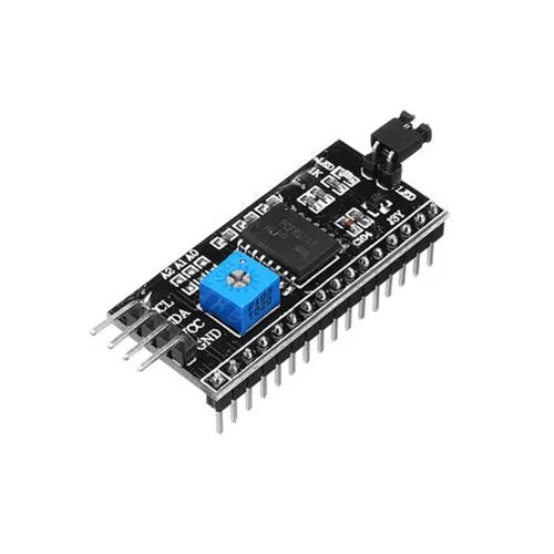 MODULO DE INTERFAZ I2C QUE FACILITA LAS CONEXIONES DE PANTALLAS LCD 16X2 Y 20X4. SE SOLDA DIRECTAMENTE SOBRE LAS PANTALLAS Y SOLO REQUIERE DOS PINES DEL MICROCONTROLADOR PARA LA COMUNICACION.