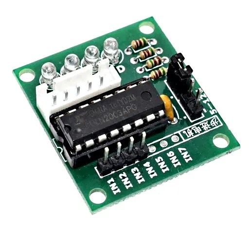 ESTE MODULO CUENTA CON EL DRIVER ULN2003, EL CUAL POSEE UNA CONFIGURACION DARLINGTON, LA CUAL SE ENCARGA DE INCREMENTAR EL NIVEL DE CORRIENTE PARA SUPLIR LA POTENCIA NECESARIA QUE SOLICITA EL MOTOR PASO A PASO. EL MODULO CUENTA CON UNA INTERFAZ QUE PERMITE LA ADAPTACION DE CUALQUIER MOTOR PASO A PAS...