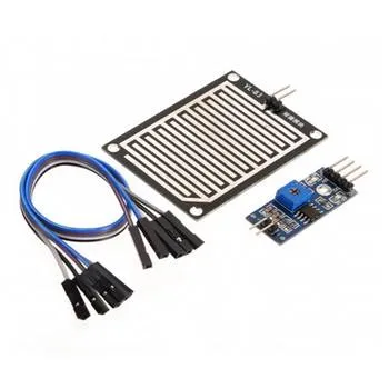 CON ESTE PRACTICO SENSOR PODRAS DETECTAR SI ESTA LLOVIENDO O NEVANDO. POSEE SALIDA ANALOGICA EN FUNCION DE LA CANTIDAD DE AGUA EN SU SUPERFICIE Y UNA DIGITAL CONFIGURADA CON UN POTENCIOMETRO INTEGRADO. COMPATIBLE CON MICROCONTROLADORES COMO PICS, ARDUINO, ENTRE OTROS.